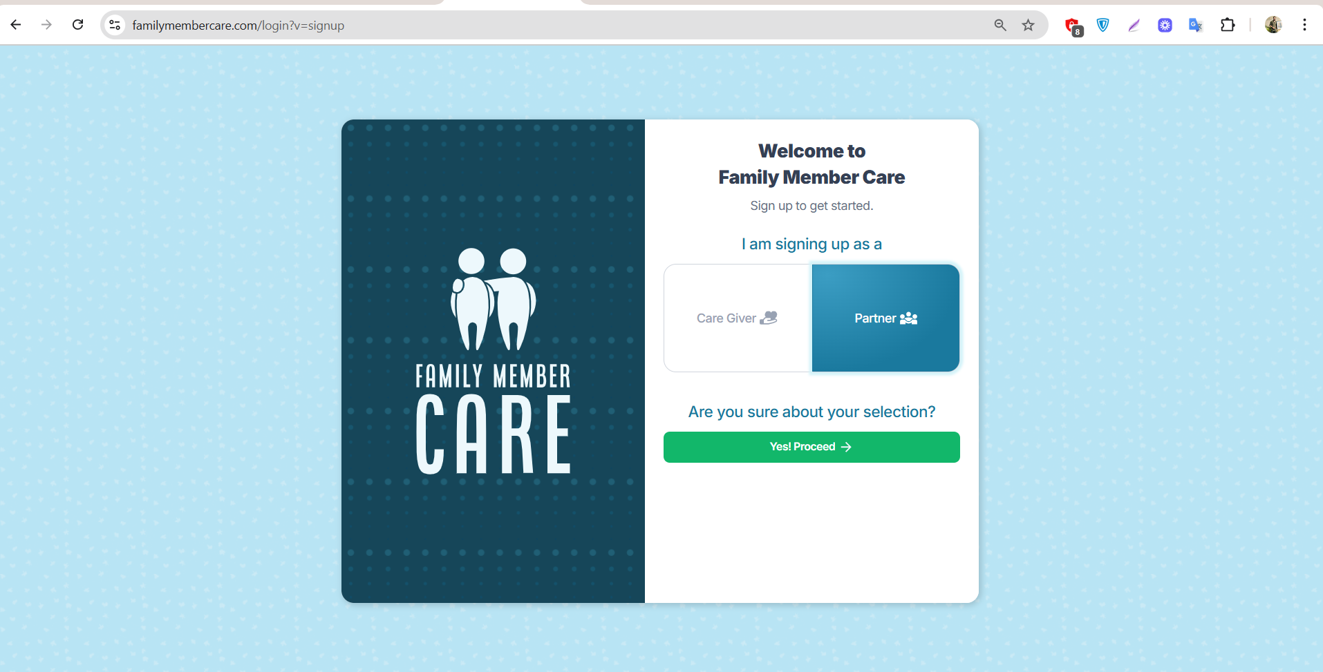 This guide will help you start your registration process as a Partner on Family Member Care.