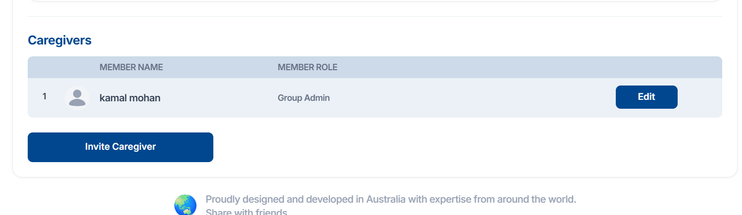 Invite Caregiver button to add new caregivers to your group
